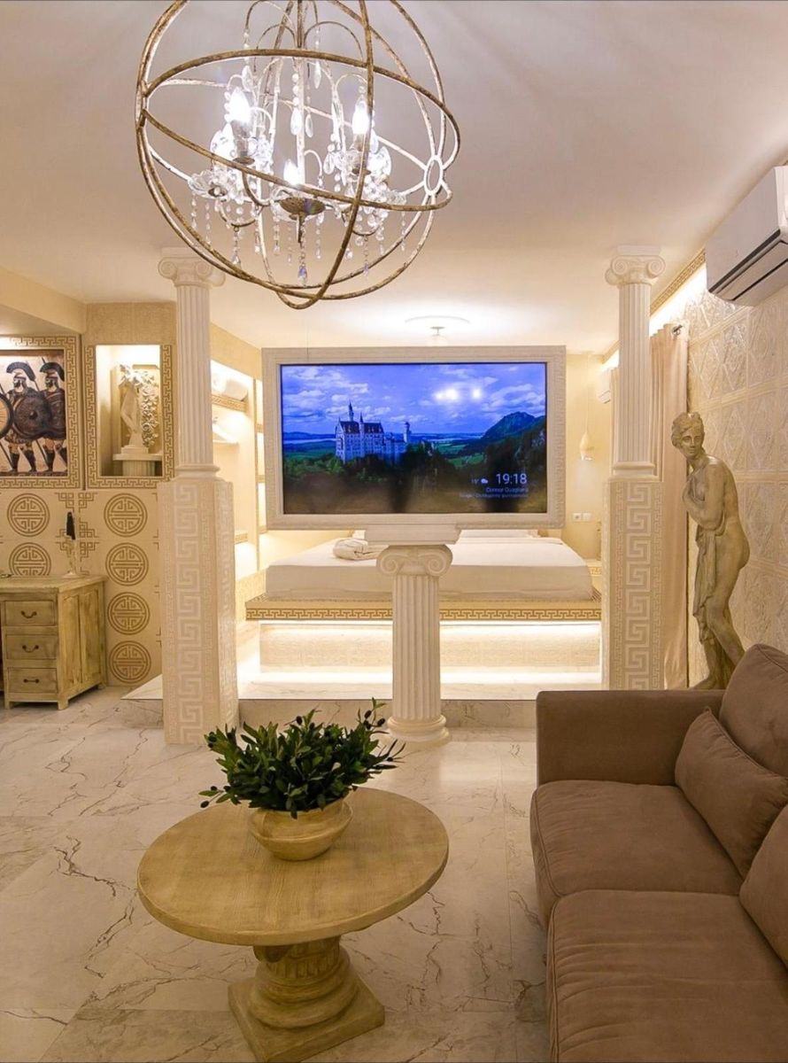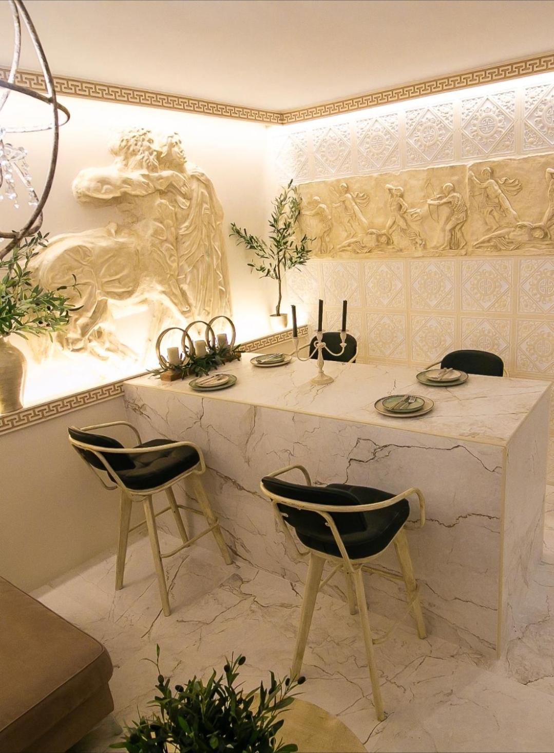 Centauria Suites Piraeus: Εκεί που η Μυθολογία συναντά την Πολυτέλεια Ανακαλύψτε μια μοναδική εμπειρία διαμονής στην καρδιά του Πειραιά. Το Centauria Suites δεν είναι απλώς ένα κατάλυμα, αλλά ένας επίγειος «ναός» αισθητικής και άνεσης, σχεδιασμένος για όσους αναζητούν το κάτι παραπάνω. ✨ Ένας Χώρος Πέρα από τα Συνηθισμένα Ξεχάστε τα τυπικά δωμάτια. Στο Centauria Suites η διακόσμηση εμπνέεται από την ελληνική κληρονομιά, με εντυπωσιακά ανάγλυφα και μαρμάρινες λεπτομέρειες που κλέβουν την παράσταση. Ύπνος Βασιλικών Προδιαγραφών: Χαλαρώστε στο επιβλητικό, custom-made κρεβάτι μας, τεραστίων διαστάσεων (2.30m x 2.20m), που υπόσχεται την απόλυτη ξεκούραση. Smart Entertainment: Απολαύστε τις αγαπημένες σας σειρές στην 70 ιντσών Smart TV, η οποία διαθέτει ειδικό μηχανισμό περιστροφής για να βλέπετε με την ίδια άνεση είτε από το κρεβάτι είτε από το σαλόνι. 🏠 Απόλυτη Ιδιωτικότητα & Αυτονομία Το κατάλυμα είναι πλήρως αυτόνομο, με δική του ανεξάρτητη εξωτερική είσοδο. Εδώ, η ιδιωτικότητά σας είναι προτεραιότητα. Απολαύστε τον χώρο σας χωρίς κοινόχρηστους διαδρόμους ή αναμονές, νιώθοντας σαν στο σπίτι σας από το πρώτο λεπτό.